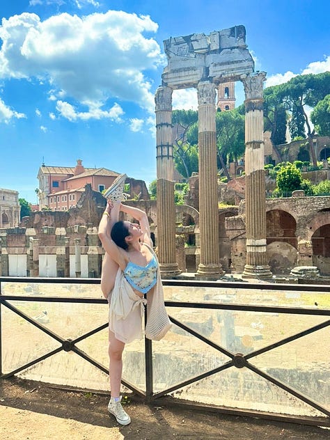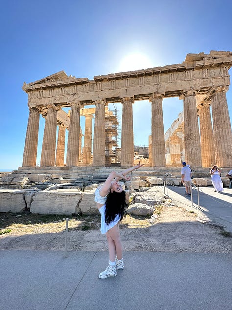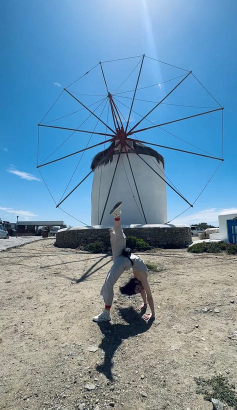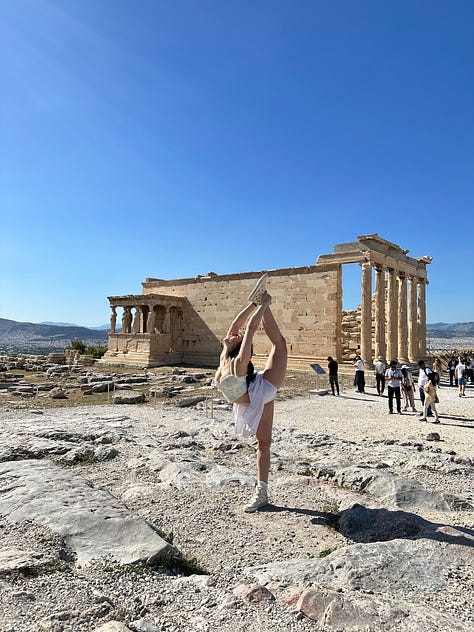 Back in May, I embarked on a European journey that blended contortion with ancient history. I wanted to share with you all the incredible experience I had in the charming streets of Mykonos, to the bustling city of Athens, the romantic vibes of Paris, the picturesque landscapes of Sicily, and finally to the eternal city of Rome.