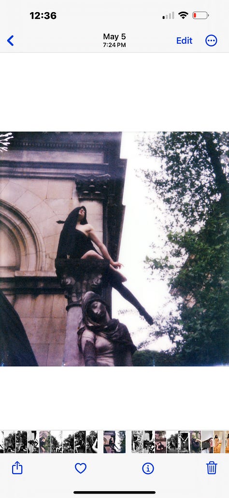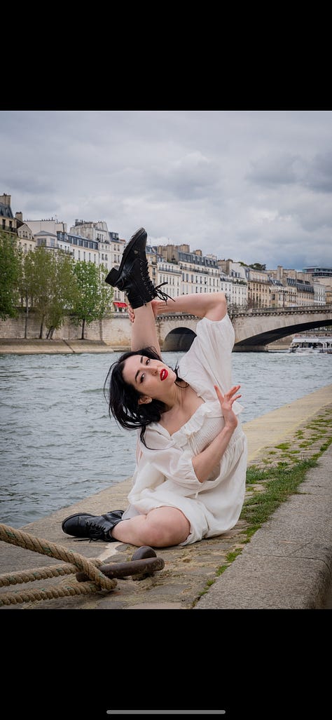 I riskily contorted in front of the Louvre in the brisk early-morning air with Marc Lamey. I once again -riskily- shot film photos with Shelbie Dimond in the iconic Père-Lachaise cemetery, the largest in Paris. Less riskily, but just as inspiredly, i created images celebrating the designs of my friend Ruzzana with Rose Mars in a decidedly French apartment, followed by wine and cheese and Frenglish conversation. I concluded my shoots with sessions near the Eiffel Tower and the Notre Dame with sbphotoart and Leo Ferraz, respectively.